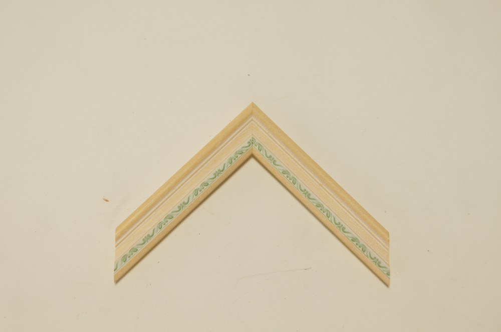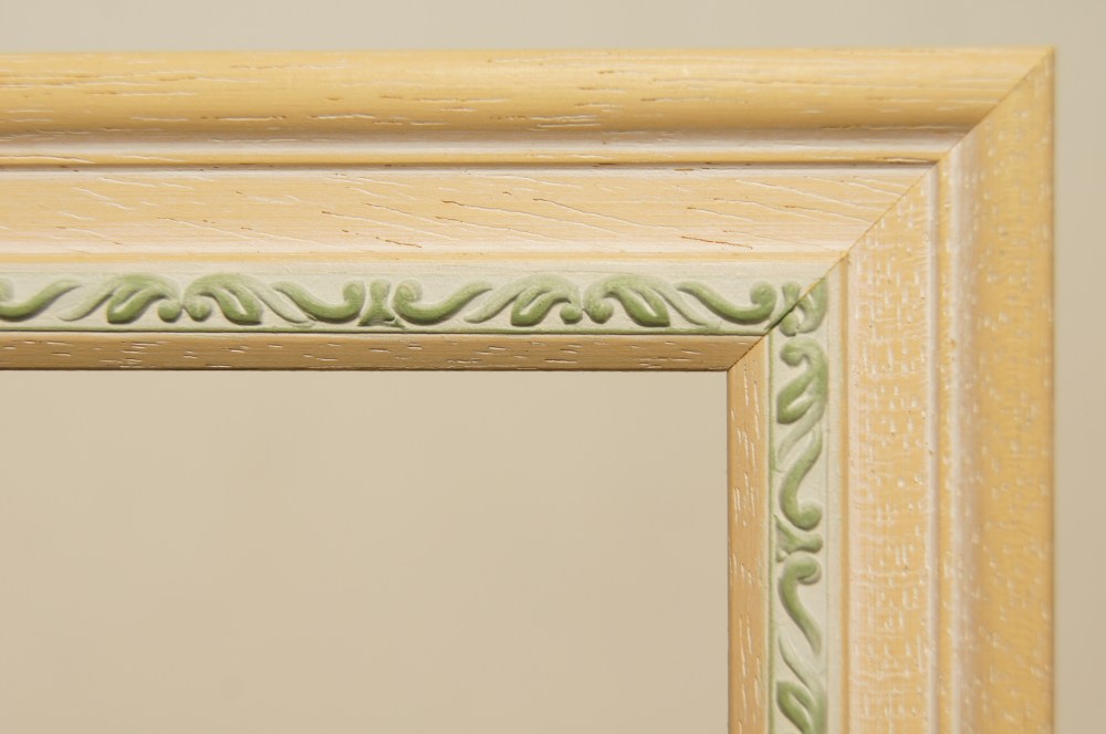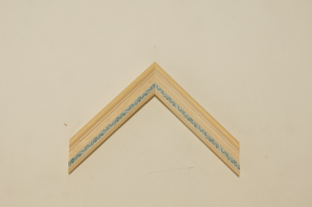 木地のフレームに可愛らしい模様。模様のところだけパステル調の色がついて、木地の部分は薄く白が塗られています。