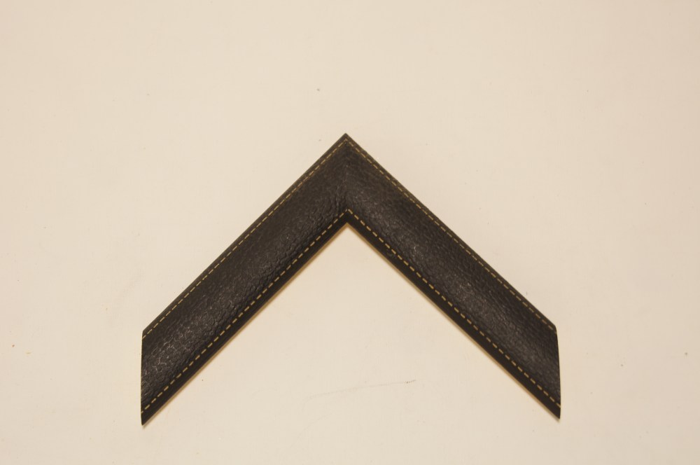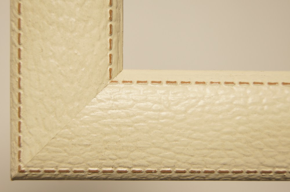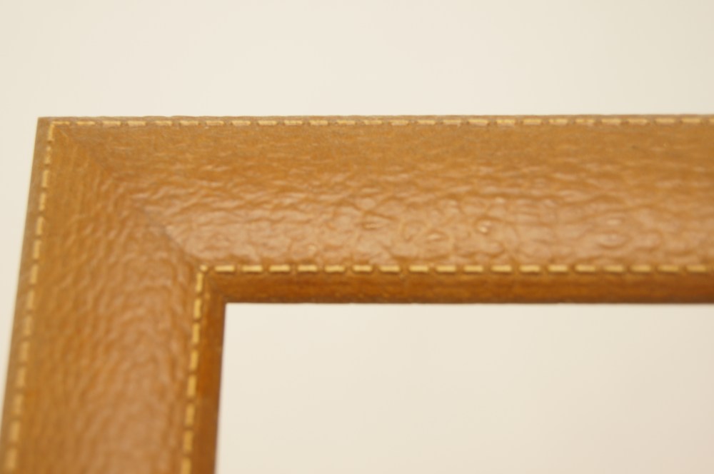 革のような模様のついたフレーム。両サイドにはステッチのような模様まで入っています。色合いも本当の革のような雰囲気を出しています。