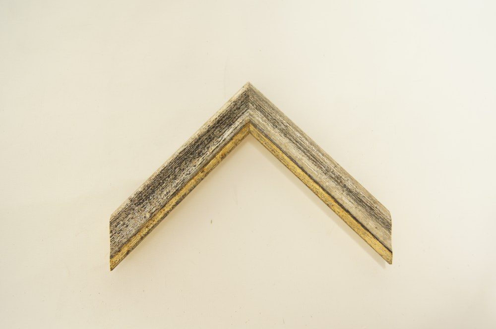 シルバー箔の下地である黒を擦りだしたアンティークな仕上げ。刃先の金がアクセントになっています。