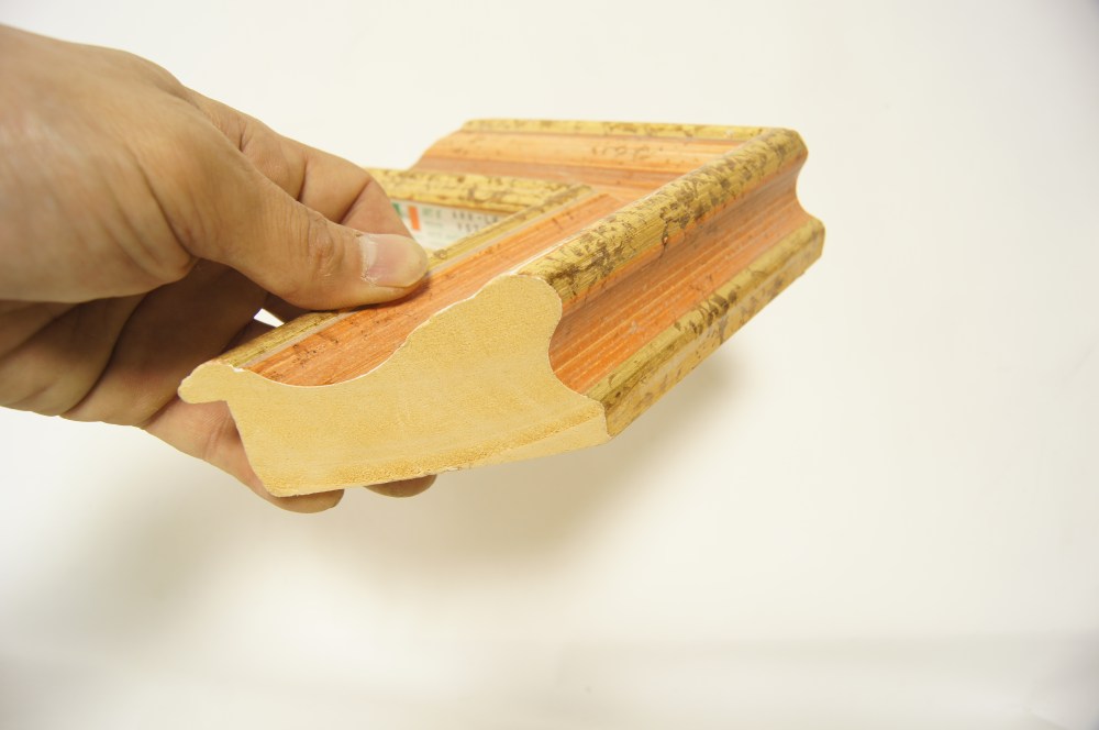 シンプルでボリュームがあるフレームですが、イタリアの職人による手彩色は柔らかで温かい印象を与えます。割と高さもありますので立体などの厚みのある作品や大作の油彩などにも使えます。