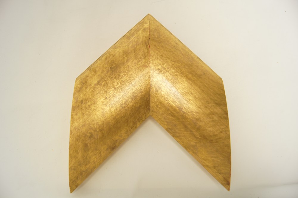 半カマ状のボリュームのあるフレーム。金の箔は汚しがかけられてそれがシンプルな中に動きをつけています。